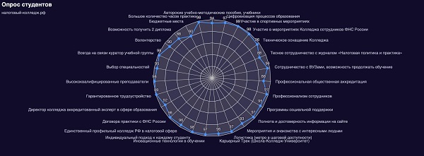 Руководство Налогового колледжа совместно со Студенческим советом провели анонимный опрос среди студентов Налогового колледжа, где было предложено выделить основные преимущества обучения в Налоговом колледже (учредитель - Московский налоговый институт).